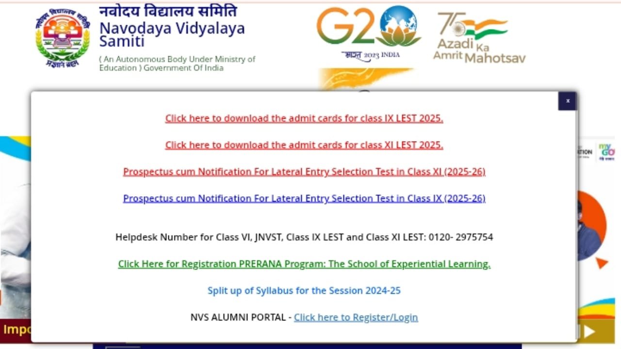 नवोदय विद्यालय प्रवेश परीक्षा 2025 हेतु कक्षा 9वीं एवं 11वीं के एडमिट कार्ड जारी