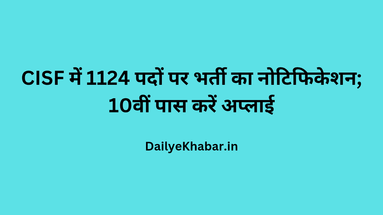 CISF Bharti 2025: 1124 पदों पर भर्ती का नोटिफिकेशन; 10वीं पास करें अप्लाई