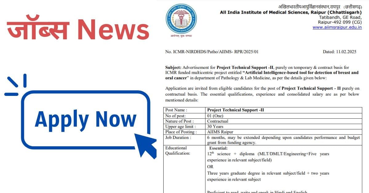 Aiims Raipur Bharti 2025: एम्स रायपुर में परियोजना तकनीकी पद के लिए निकली भर्ती